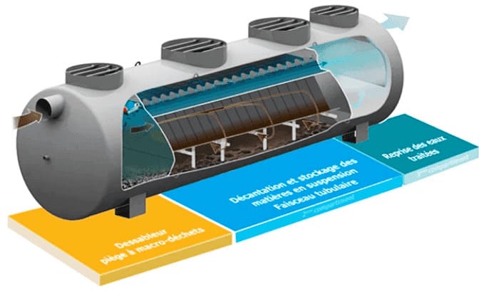 - Les décanteurs de type DPS ont pour caractéristique d’être équipés de filtres dans le dernier compartiment, tels que présentés ci-dessus.
